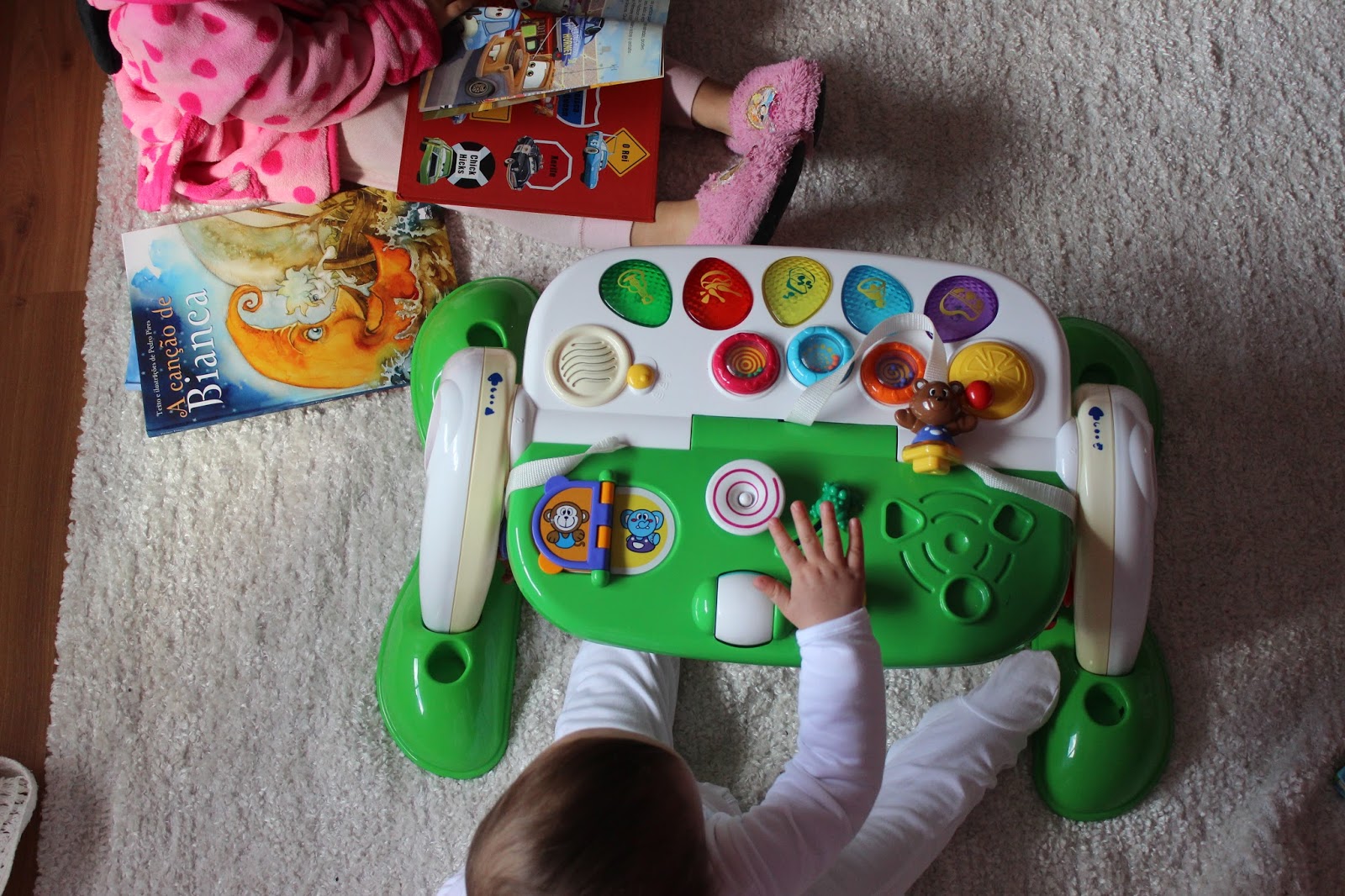 A outra mesinha (que esteve assim enquanto o Vicente não lhe tinha acesso, entretanto retirei as peças pequenas que pudessem causar algum risco para ele).